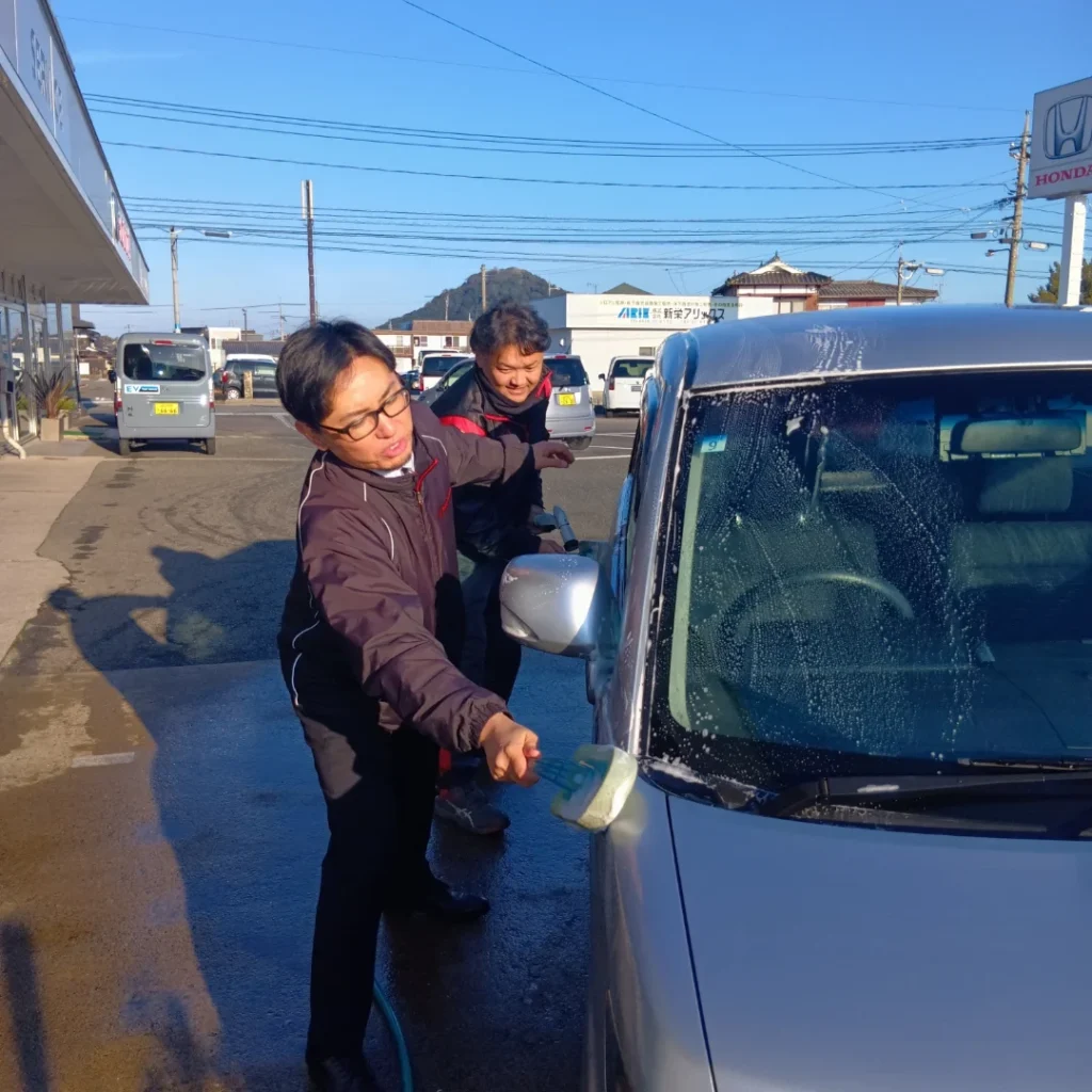 2025.12.20 洗車の日🌈 #スタッフの日常 萩市のホンダカーズ山口東萩店です! おはようございます🌤️ 金曜日はスタッフ全員で洗車の日です🚗 お客様に気持ちよく乗っていただけるよう、代車も清掃済です✨️ 店長腰を入れて磨きました笑 展示車も更にピカピカになりましたので 週末は是非、ホンダカーズ山口東萩店へお越しくださいませ😊