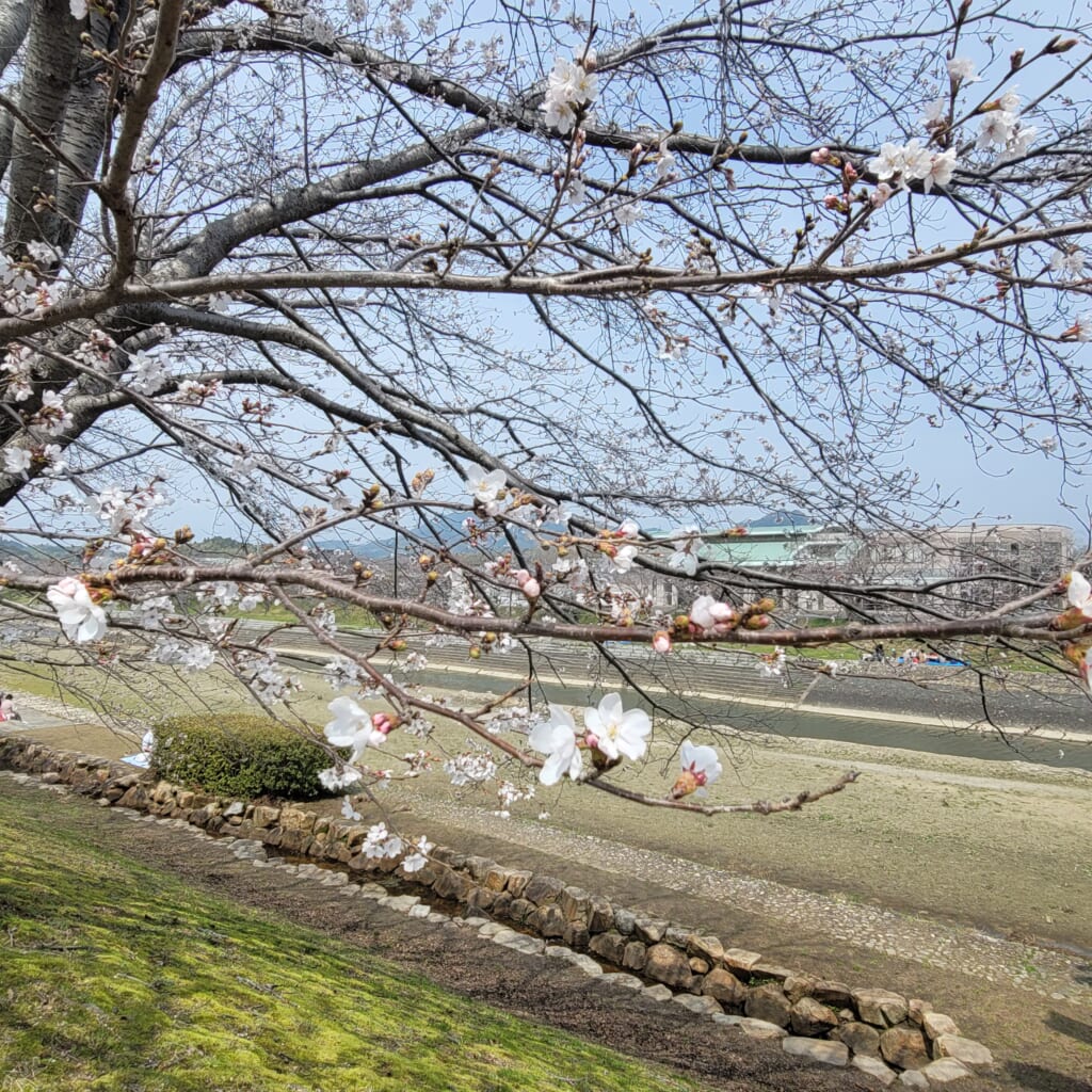 田布施川沿いにはたくさん桜がありますが、多くの人がランチボックス広げてお花見されていました。